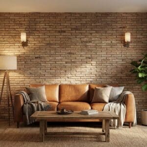 Tip: En paredes con mucha textura, combina con mobiliario de líneas limpias para equilibrar el conjunto.